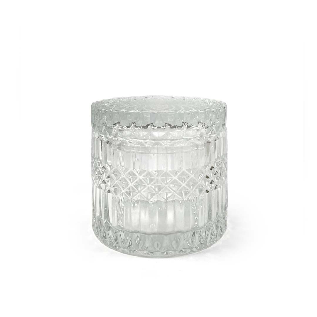 Vintage inspired cut glass vessel offers both charm and modern versaility for any home decor. Comes with a matching complimentary flat lid.